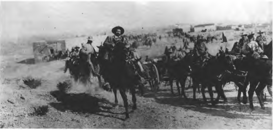 Pancho Villa on horseback leading the rebel Mexican army that clashed with the American army in Mexico in 1916. President Wilson sent American forces over 300 miles into Mexico to arrest Villa, who allegedly had murdered a number of Americans, but the Americans were not able to catch him. (Brown Brothers)